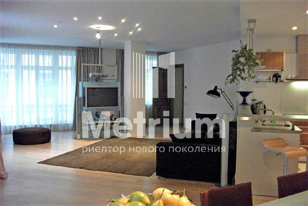 Интерьер квартиры выполнен в современном стиле с использованием качественных натуральных материалов. Квартира полностью укомплектована мебелью, оборудована современной бытовой техникой и готова к проживанию. Функциональная планировка включает в себя кухню-гостиную, 2 спальни, кабинет, гардеробную, 2 санузла.